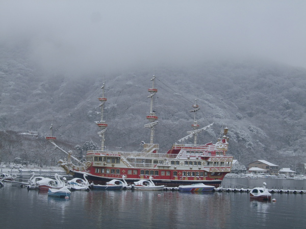 蘆之湖遊覽船有多種外觀的船型,遊客可選擇「箱根觀光船」的海盜船、